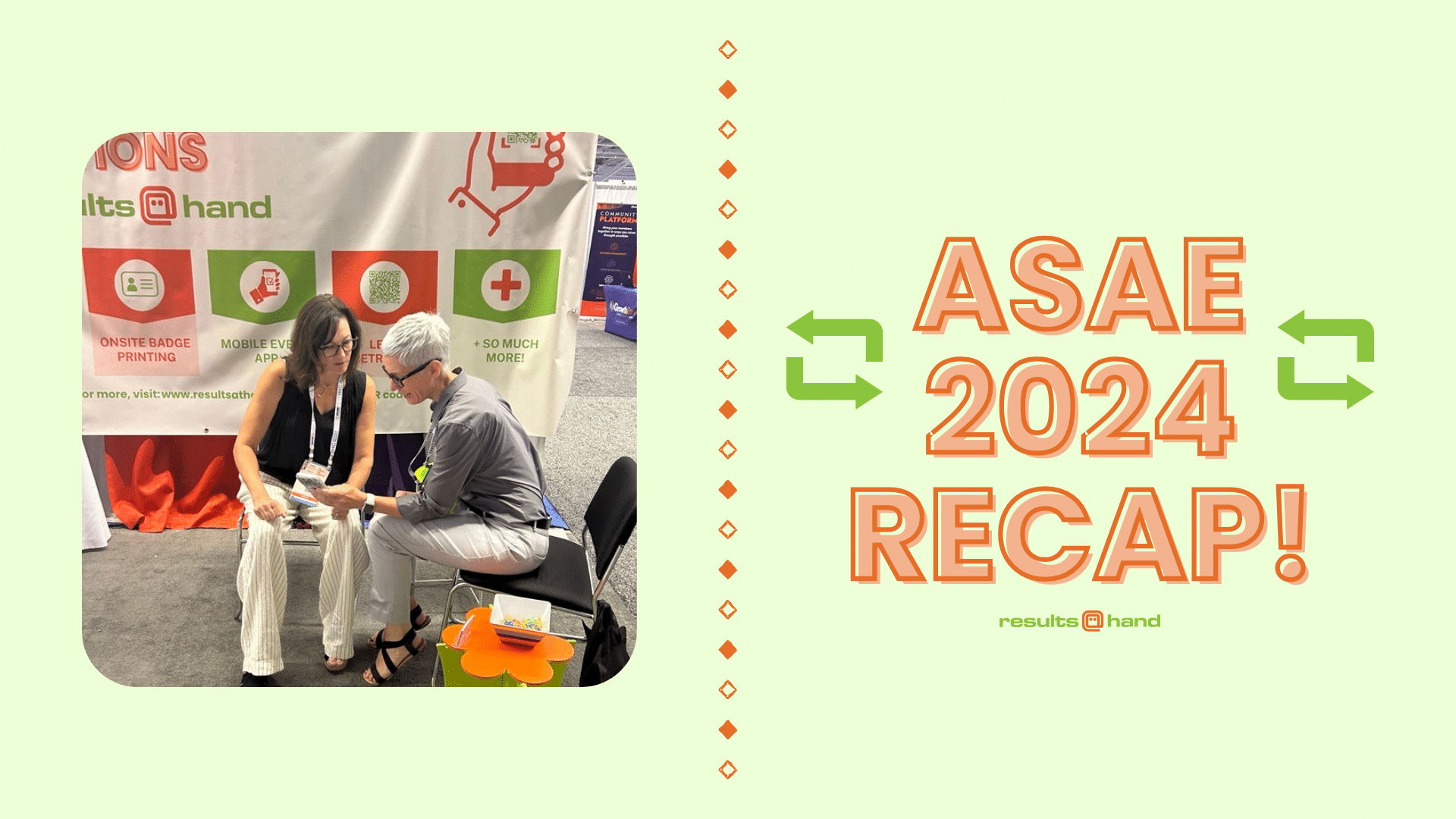 The ASAE 2024 Annual Meeting and Exposition also hosted an expo for exhibitors to showcase their businesses and garner strong leads. Throughout the Expo, Kim enjoyed meeting with current, past, and potential customers to catch up and discuss hot new features for our Event Management Solutions. Kim set up a spectacular booth equipped with an onsite badge printing example for event-goers to see the product in action. The convenience of Results at Hand’s Onsite Badge Printing Solutions ensures that little time was wasted waiting in line to check-in and receive a badge to make more time for powerful networking and conversation. To inquire about pricing and other information regarding Onsite Badge Printing, email Kim Harwood, kim@resultsathand.com. In addition to showcasing our Onsite Badge Printing Solution to booth visitors, Kim also had the opportunity to meet with folks from our future tech partner, Novi AMS! Be on the lookout for more information about this partnership and how it can simplify your event even further this Winter!