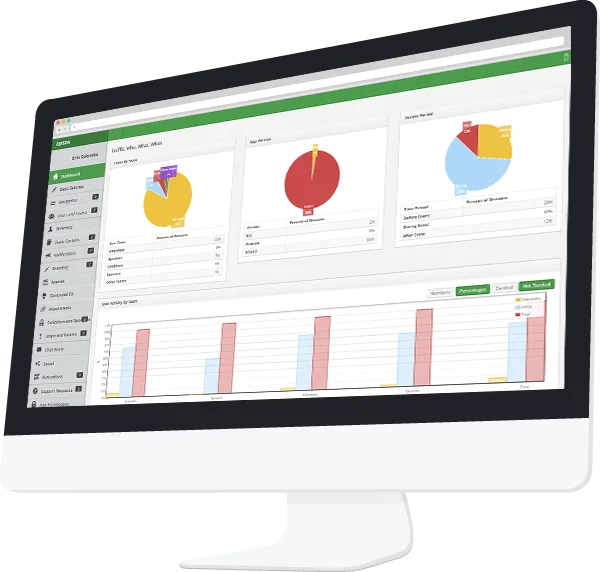 • Study event app stats in the admin portal to see traffic sources, user activity, and more.