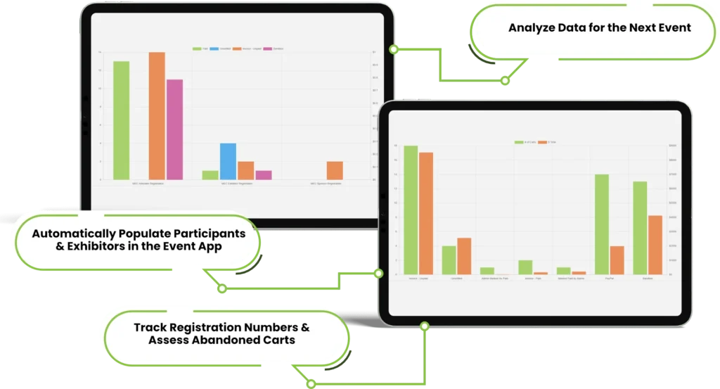 Integrate your site with your preferred payment processor to collect payments from your attendees and Exhibitors – we don’t touch your funds and bill you separately for registrations! Even offer your attendees discounts and promo codes so they can save!