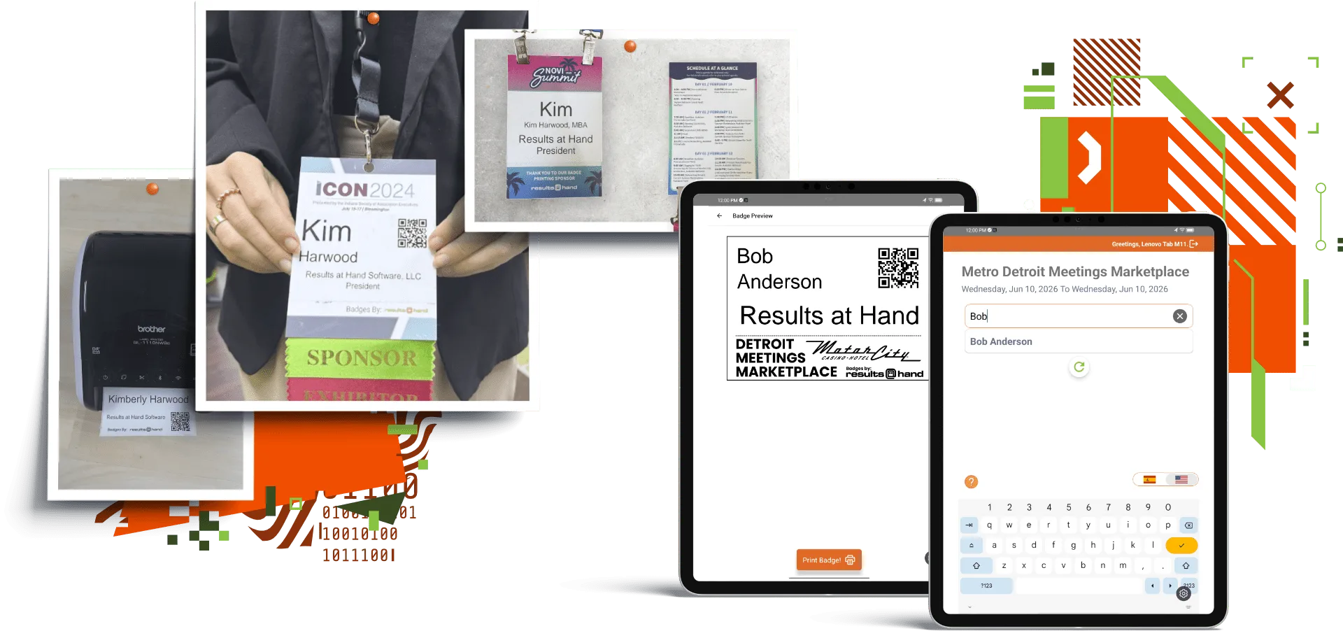 Streamline your event check-in and ditch the hassle of pre-printing name badges with Results at Hand’s Onsite Badge Printing Solution!